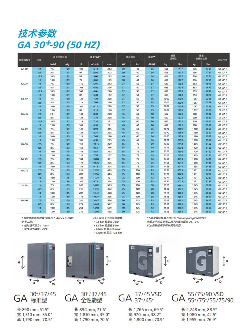 阿特拉斯?科普柯GA 30+ -90系列壓縮機帶給您在持久性、可靠性、和性能方面良好的體驗,同時也將您的總成本降到很低。 GA VSD 、GA+ 和GA三種機型的選擇為您的需求提供壓縮空氣解決方案以實現較好的回報。為苛刻的工況設計、制造,保障用戶的生產效率。